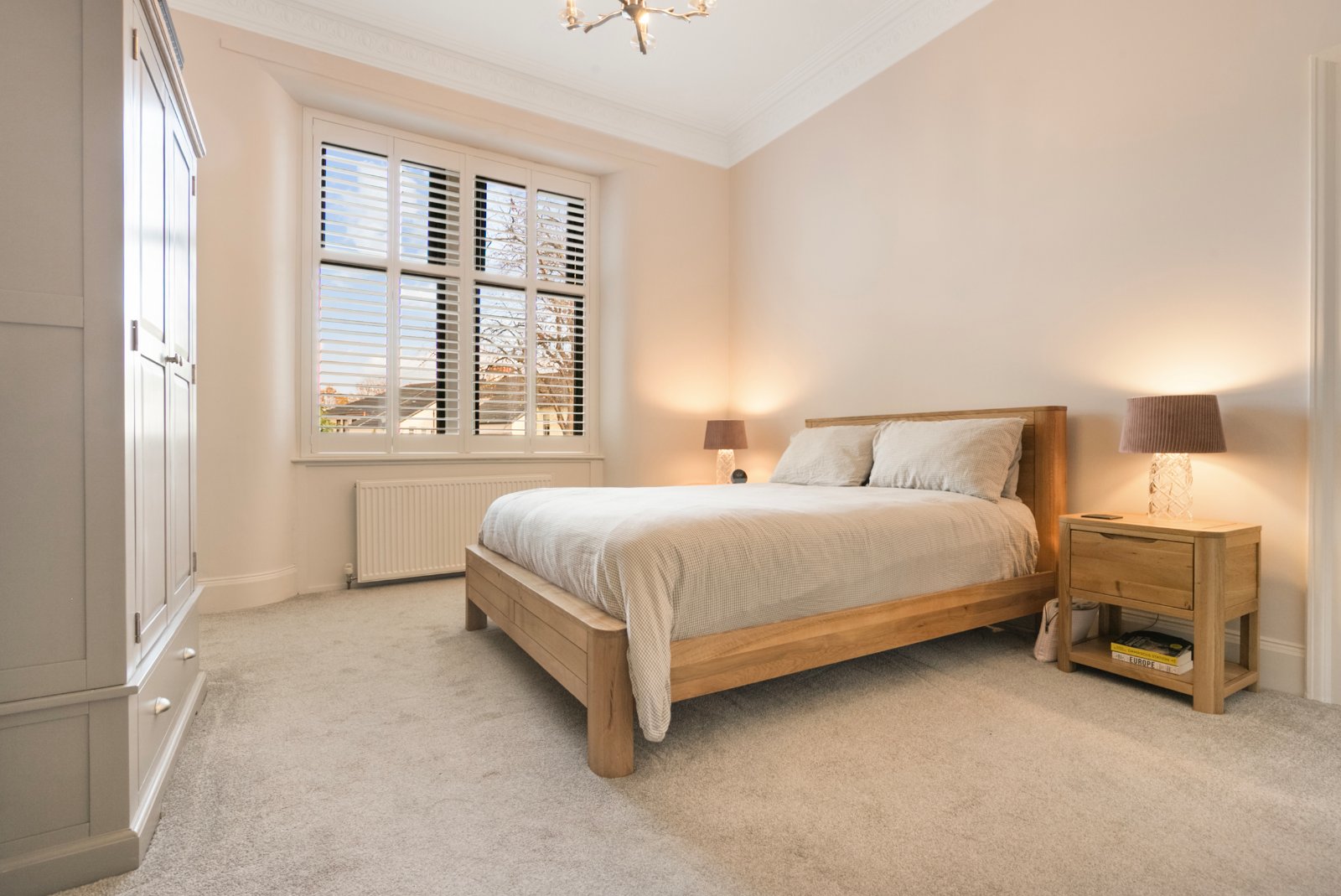 The showpiece of this exceptional property is the garden room—a stunning retreat with a bar area and log burner, perfect for year-round entertaining. The mature rear garden is mainly laid to lawn, with access to a communal drying green.