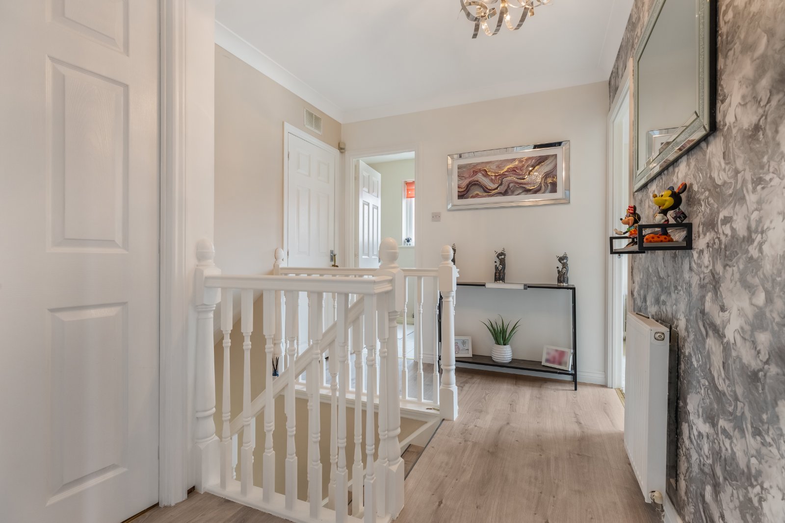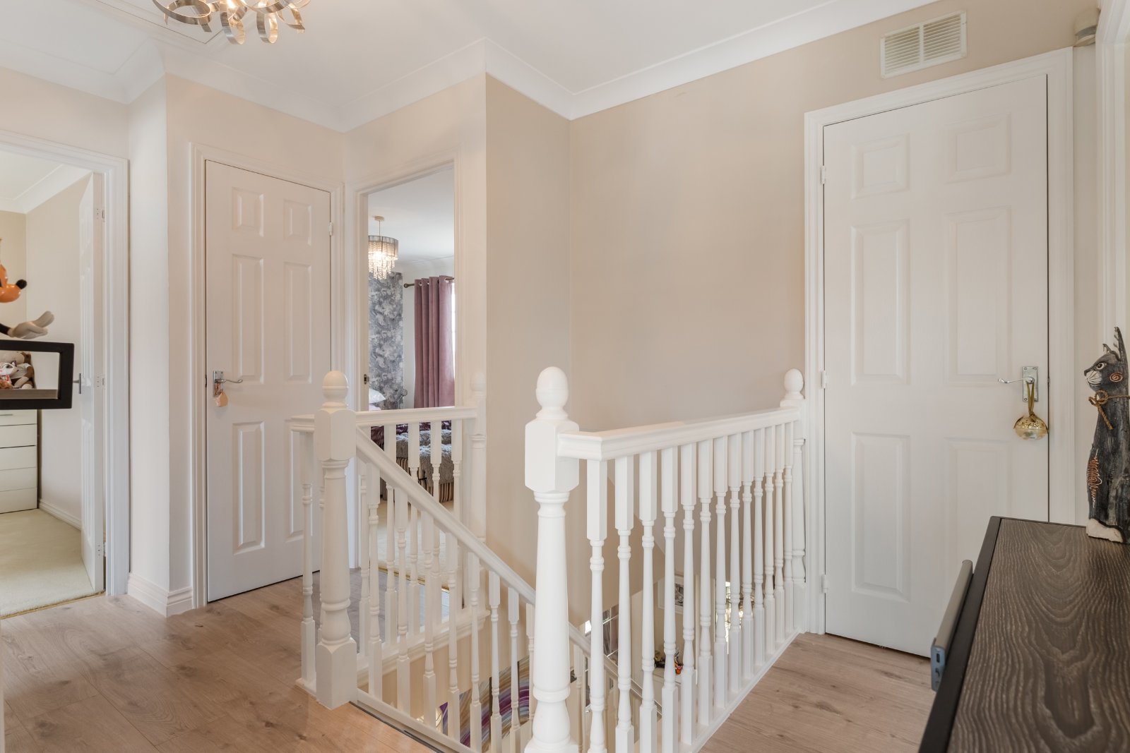 Upstairs the accommodation comprises; Hallway Landing; spacious Master Bedroom with fitted wardrobes and pristine En-Suite Shower Room, three further double Bedrooms and family Bathroom.